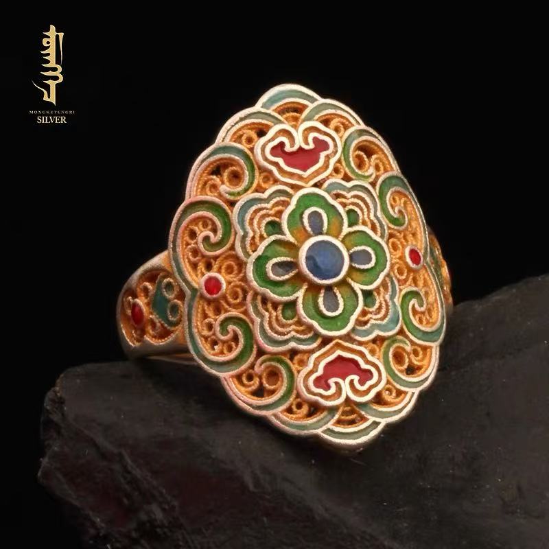 ミニモンゴルパオ(ゲル)型 ジュエリーケース/収納ボックス(銀メッキ仕様・内モンゴル工芸品)指輪箱/宝石箱/小物入れとして (ミニチュアゲルデザインの多用途収納ケース)/迷你蒙古包首饰盒收纳盒镀银戒