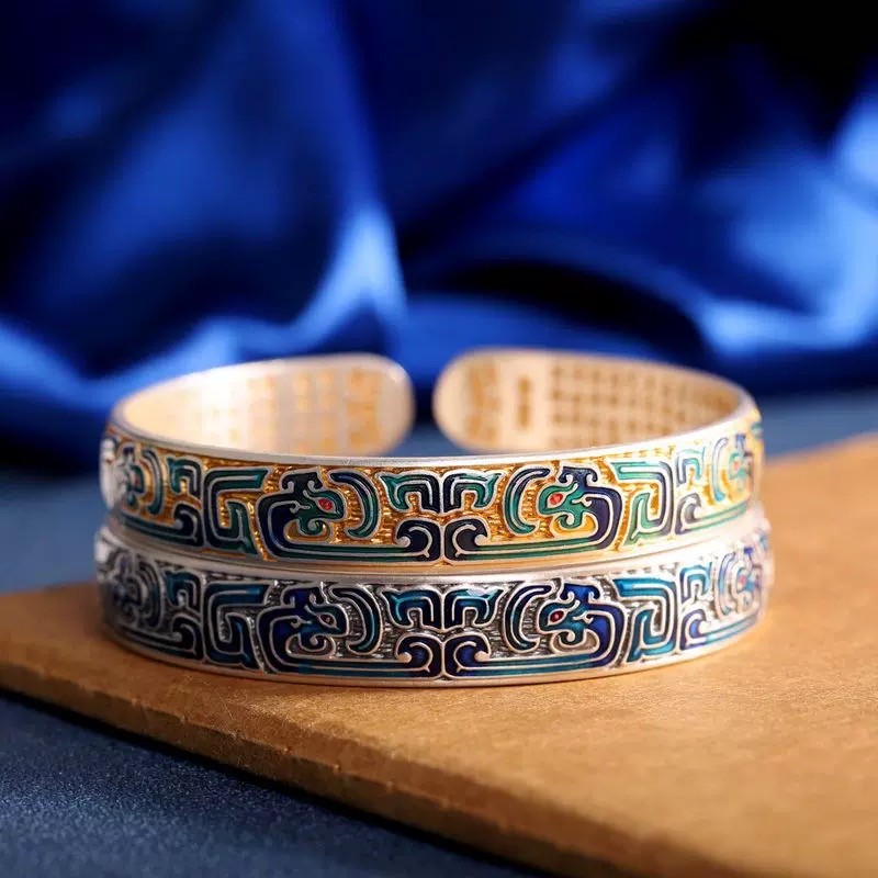 バングル 男女兼用 民族風 ワイドタイプ 個性派ブレスレット モンゴルオリジナル ハンドメイドブレスレット ワイルド系トレンドメンズ/手镯男女款民族风宽版个性手环蒙古原创手工手链霸气潮男