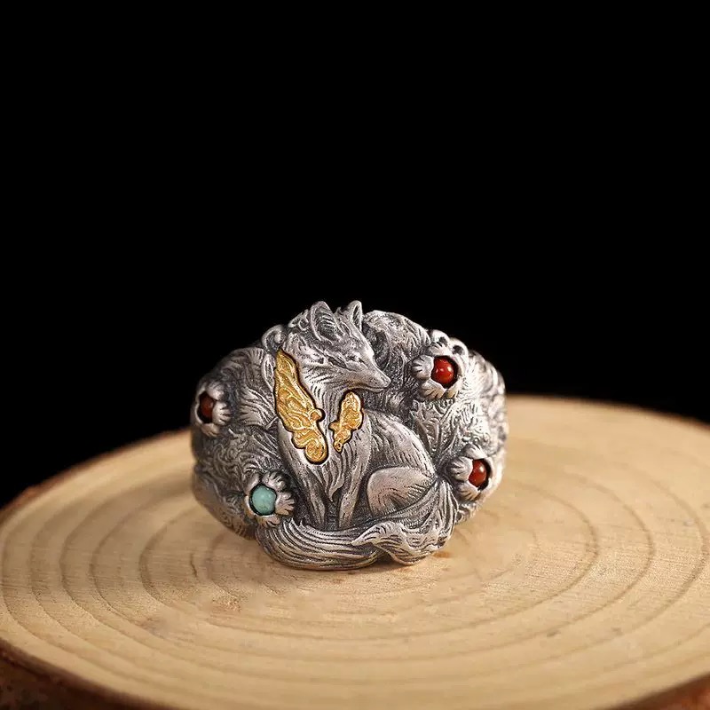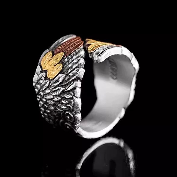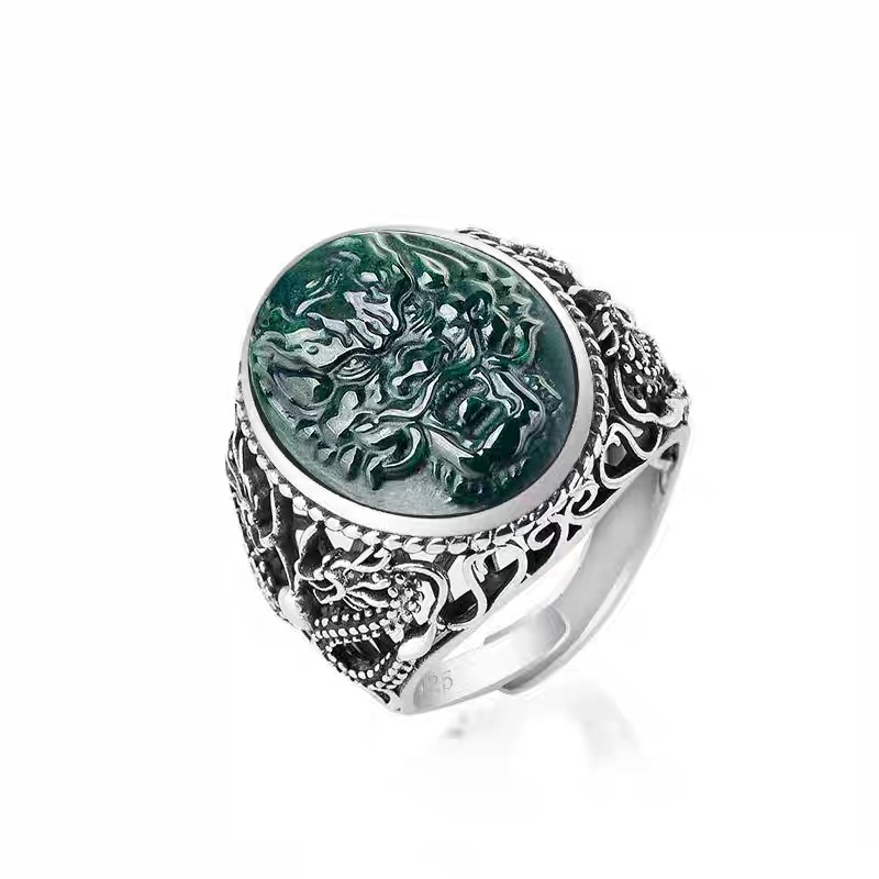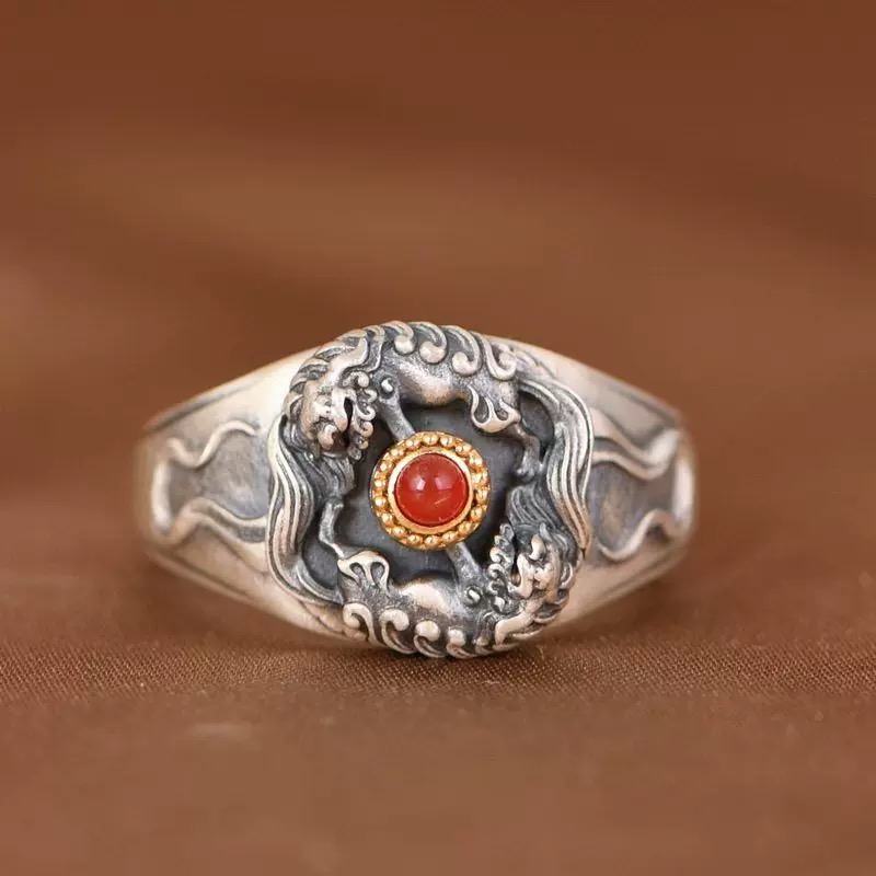 シルバー メンズリング 金蟾&馬鞍デザイン ワイルド系 個性派 リング 立爪タイプ 開口式 メンズ 指輪 ヒップホップ トレンド/银男士金蟾马鞍戒指霸气男个性指环食指开口纯银戒潮男嘻哈