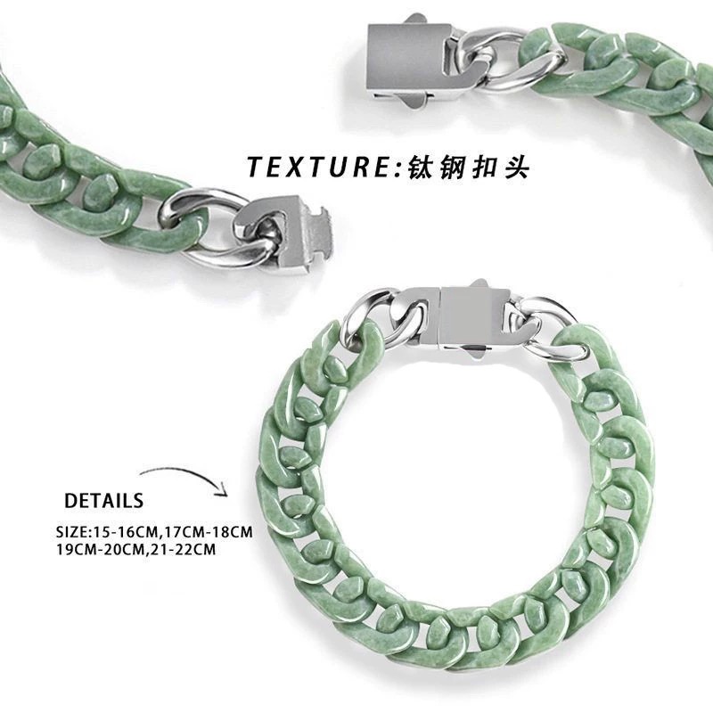 天然A貨翡翠 豆緑色 キューバチェーンブレスレット ジェイド チタン鋼 ヒップホップスタイル 個性派 メンズトレンドアクセサリー /天然A货翡翠豆绿古巴链手链玉石钛钢嘻哈风格个性男潮流手饰