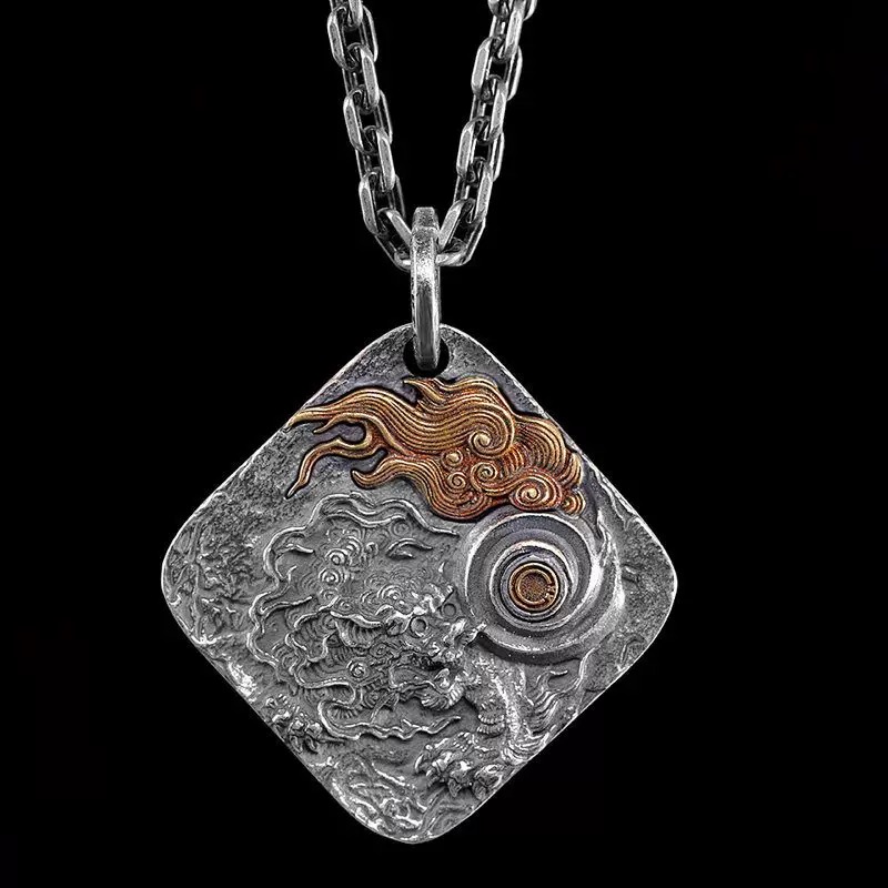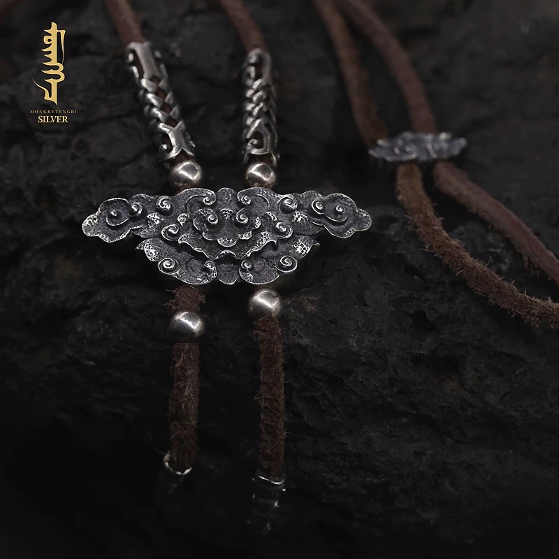 吉祥雲ネックレス メンズペンダント カップル用 ヴィンテージ風 レザーロープ 個性派 トレンド 男女兼用 ヒップホップスタイル /蒙客纯银祥云项链男士吊坠情侣复古皮绳个性潮男女挂坠hiphop嘻哈